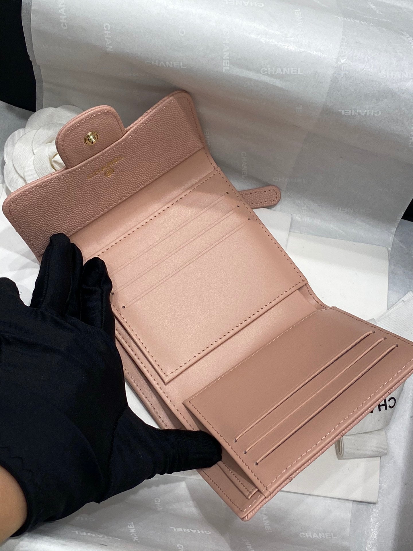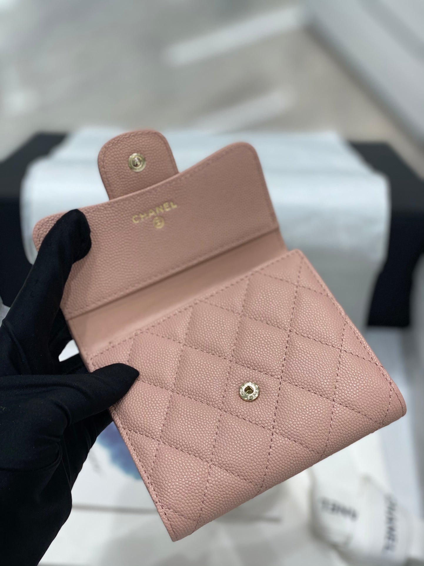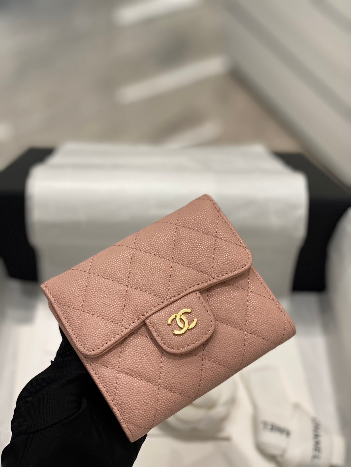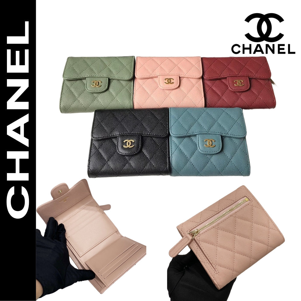 【シャネル】大人気コンパクト ♪マトラッセ♪三つ折り財布 キャビアスキン5色