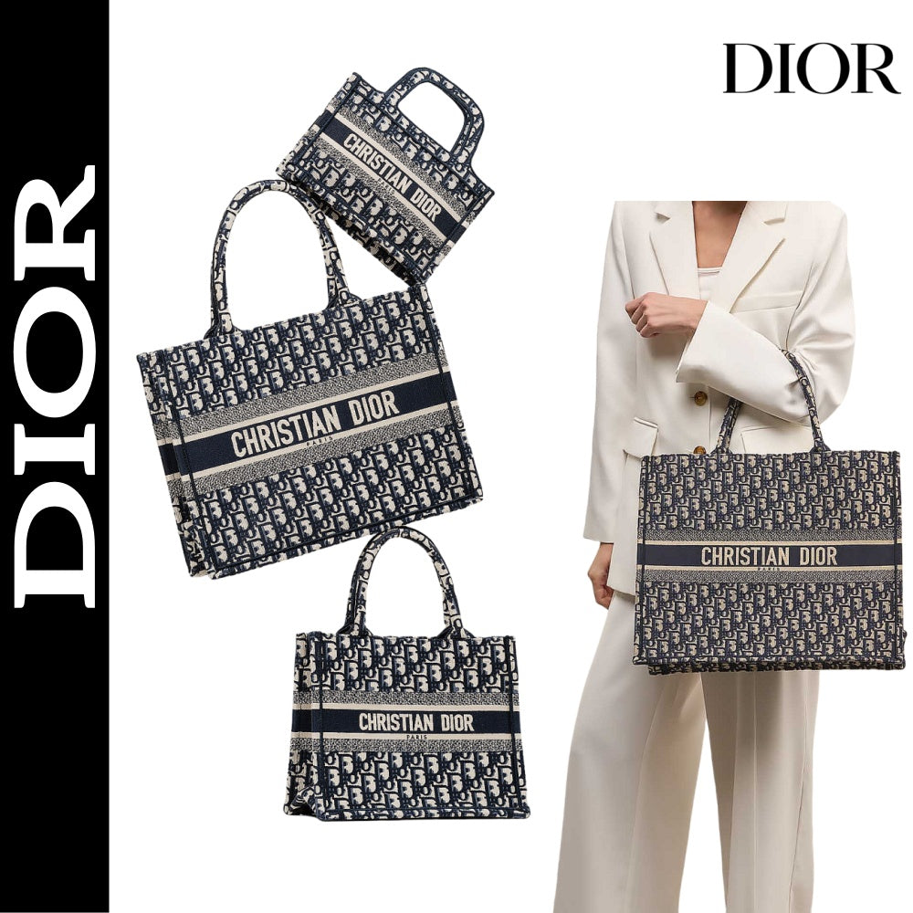 【ディオール】◆大人気 BOOK TOTE 定番柄刺繍 トートバッグ-3 sizes
